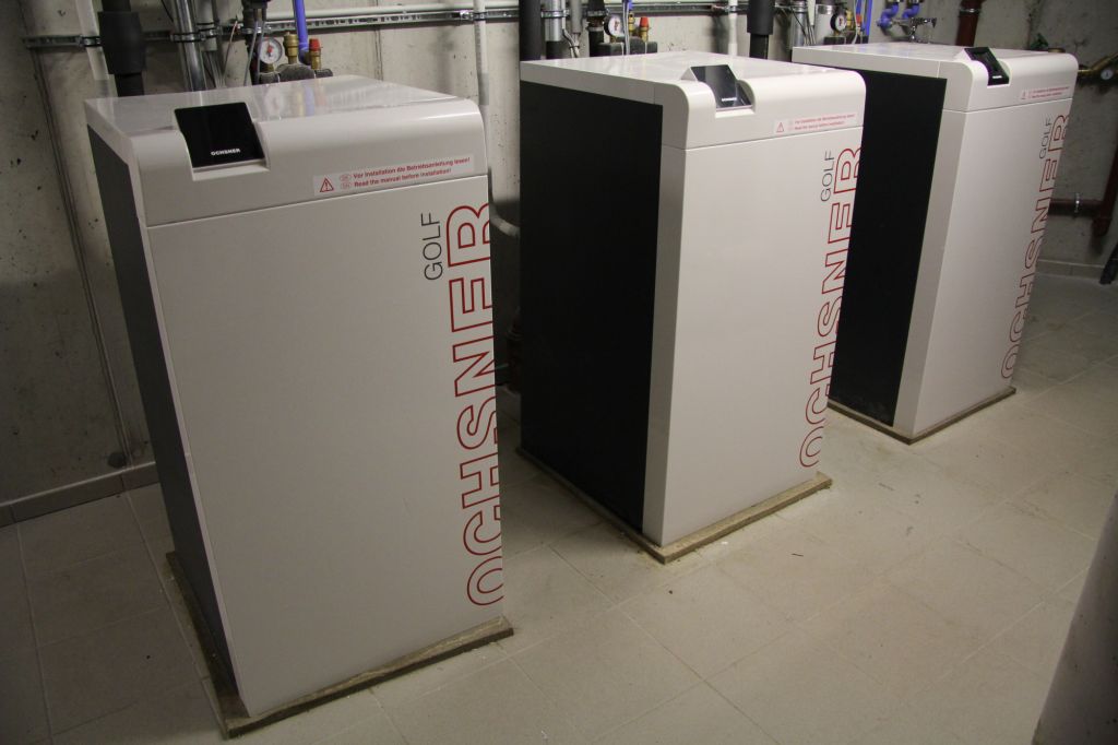 Im Einsatz sind insgesamt sieben Ochsner Wärmepumpen der Baureihe Golf Maxi plus, Typ GMLW 35 Plus mit einer Leistungsfähigkeit von maximal ca. 40 kW sowie sieben Tischverdampfer vom Typ VHS-M 35. Die Wärmepumpen liefern eine Leistungszahl (COP) von 4,1 bei L2/W35 und von 3,2 bei L-10/W35. Damit erzielt die Technik auch bei niedrigen Außentemperaturen einen guten Wärmeertrag. Für die Belieferung der Fußbodenheizungen, die alle Wohnräume mit Heizwärme versorgen, ist die Technik bestens gerüstet. Die Luft-Split-Wärmepumpen arbeiten mit einem Scroll-Verdichter mit doppeltem Druckausgleich und dem Arbeitsmittel R407C. Die Tischverdampfer vom Typ VHS-M 35 aus der Millenium-Serie zeichnen sich durch einen besonders leisen Lauf aus, mit „Silent Mode“ und „Super Silent Mode“ sind die GMLW-Modelle aktuell die leisesten Wärmepumpen im Markt. Verantwortlich dafür ist die stufenlose Regelung der Lüfter durch die Steuertechnik OTE 3.0. Zusätzlich besitzen die Wärmepumpen eine individuell einstellbare Schall-Nachtabsenkung. „Dass Geräuschbelästigungen der Anwohner so gut wie ausgeschlossen sind, war für uns ein weiteres wichtiges Entscheidungskriterium“, berichtet Fahrner.